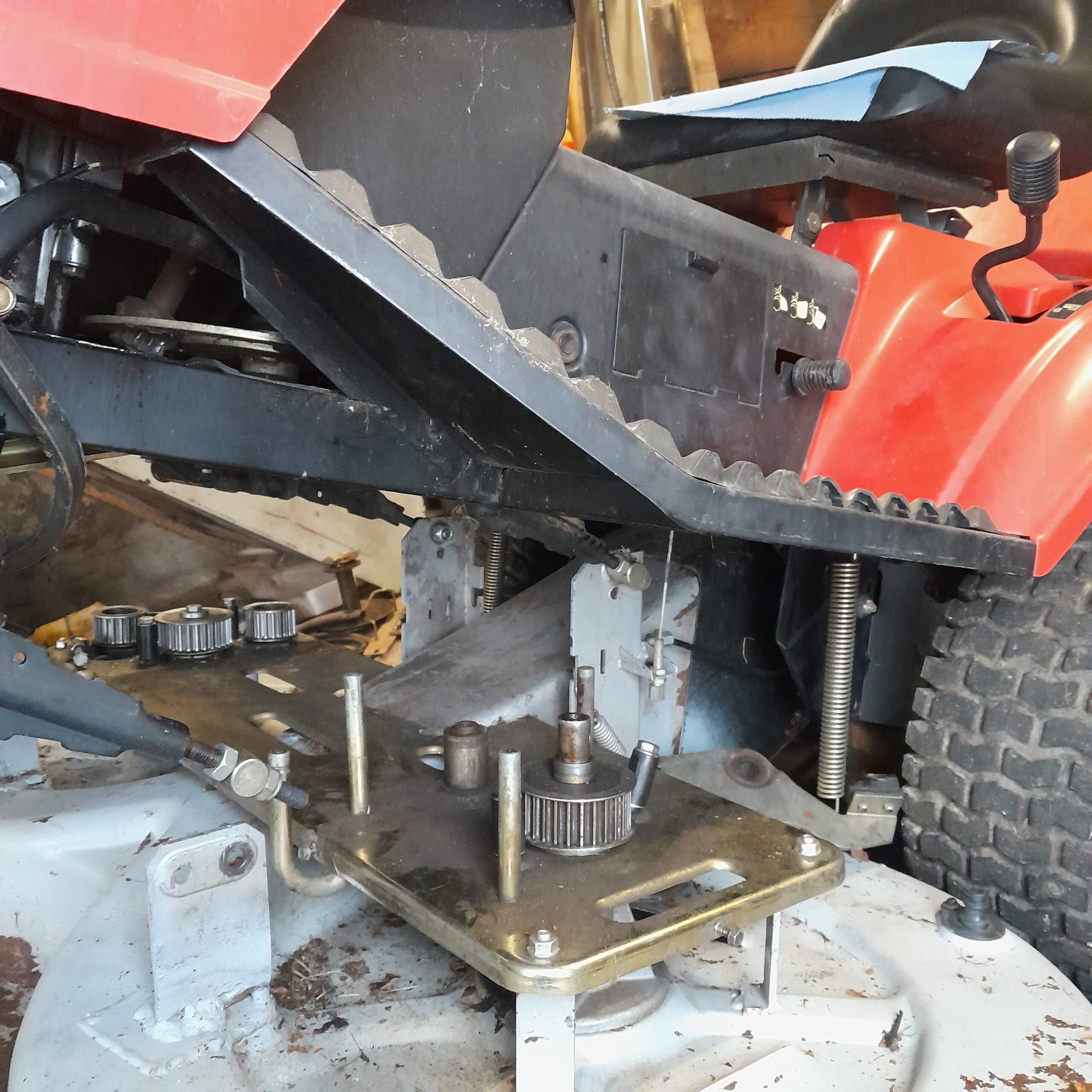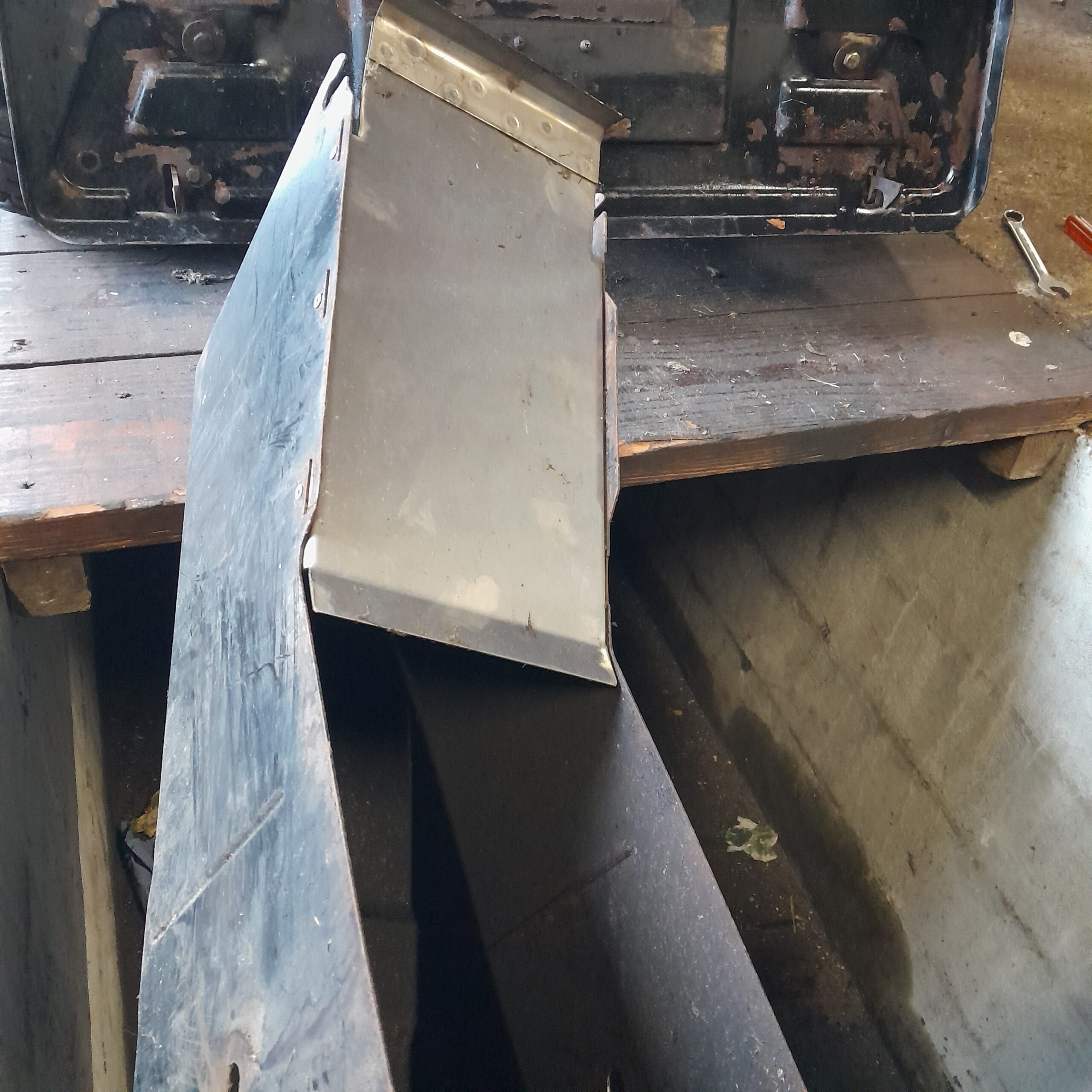 Le fond du canal d'éjection est souvent rouillé et troué sur ces modèles, car le gazon y reste. Le fond du canal a été remplacé par une tôle en acier inox, plus de problème de rouille du coup.